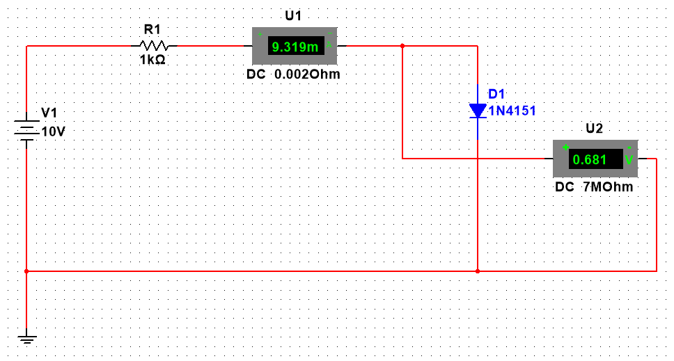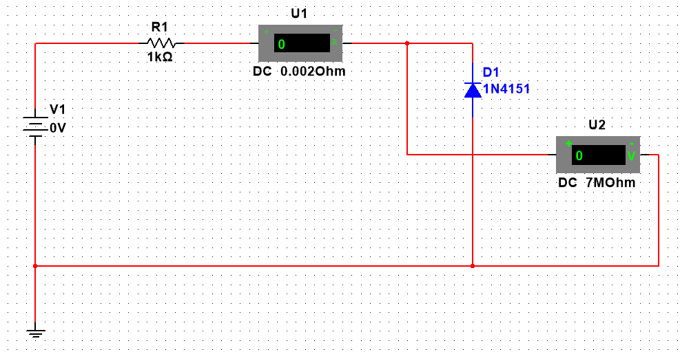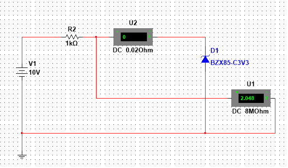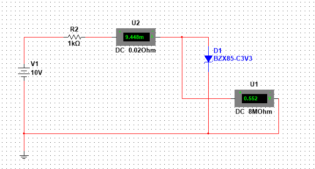 Рис. 3. Имитационная схема для исследования прямой ветви ВАХ стабилитрона