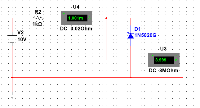 Рис. 5. Имитационная схема для исследования обратной ветви ВАХ диода Шоттки