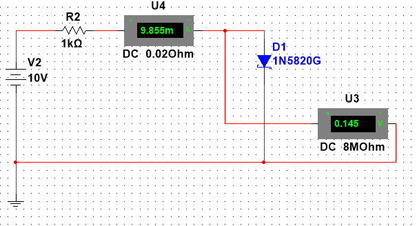 Рис. 2. Имитационная схема для исследования прямой ветви ВАХ диода Шоттки
