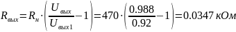 Запишем это значение также в табл. 1 и вычислим выходное сопротивление по формуле: