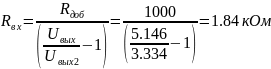 Запишем это значение также в табл. 1 и вычислим входное сопротивление по формуле: