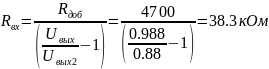 Уберем нагрузочное сопротивление, а для определения входного сопротивления включим добавочное сопротивление Rдоб 4700 Ом во входную цепь (последовательно с генератором переменного напряжения). При этом напряжение на выходе уменьшится от Uвых до Uвых2.