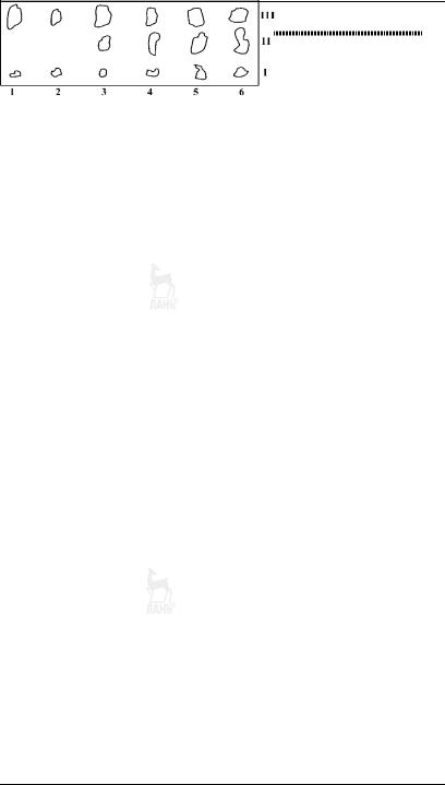Для построения градуировочного графика на пластин ку наносят растворы, содержащие разные количества стан дартного вещества, хроматографируют, проявляют зоны и измеряют их площади (рис. 6.5).