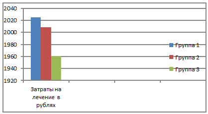 Из таблиц 3,4,5 видно, что при первом методе лечения экономические затраты составили 2025 рублей, при втором способе 2008 рублей, что на 0.9% меньше, чем в первом.