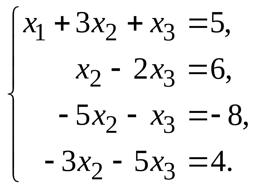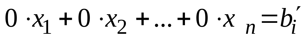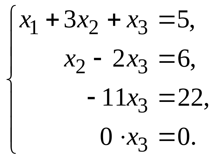 Если после нескольких шагов получим уравнение вида (8.6), в котором , можно сделать вывод о несовместности системы. Если же такое уравнение не встретится, придем к системе