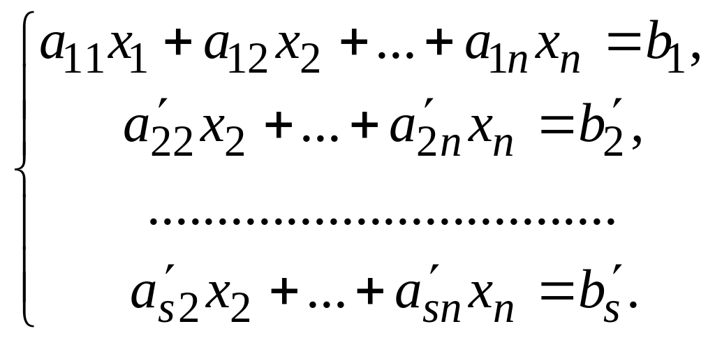 Первое неизвестное исключили из всех уравнений системы, начиная со второго.