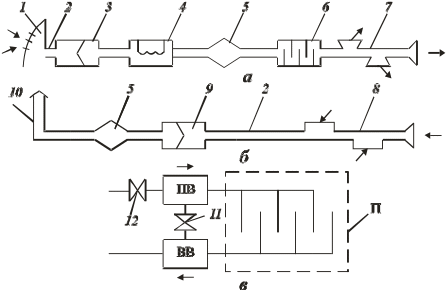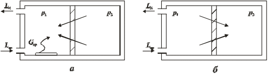 а – Lв > Lпр, p1 < p2; б – Lв < Lпр, p1 > p2