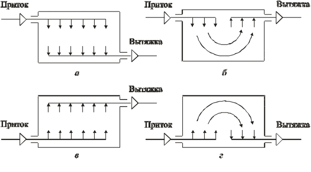 Рис. 4.2. Схемы организации воздухообмена при общеобменной вентиляции