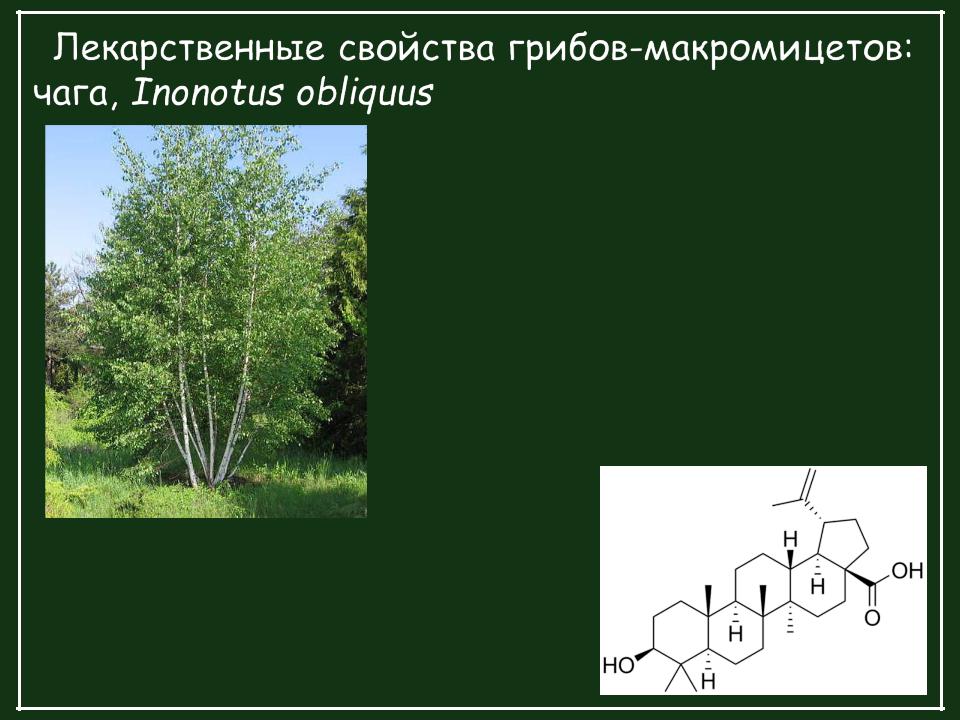 Ланостерин обусловливает антиоксидантные, противораковые и иммуномодулирующие свойства, но его содержание в культивируемой чаге всего 3,6% по сравнению с 45,4 % в природной.