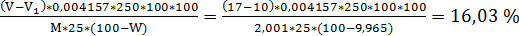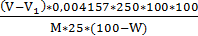 Влажность сырья (X) в процентах вычисляют по формуле: