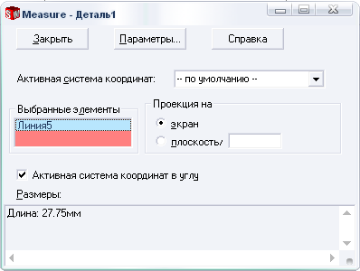 Перемикач Projection on (Проекція на) визначає, у яке місце треба спроецировать виділений об'єкт. Можна спроецировать виділений об'єкт на екран або на задану площину. Після цього система виконає вимір проекції.
