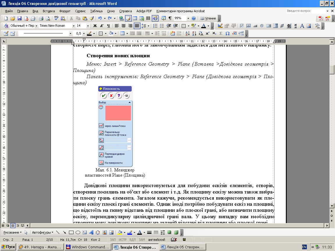 Лекція 6 Створення довідкової геометрії SolidWorks 2005