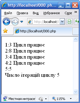 echo "Цикл працює <br>";