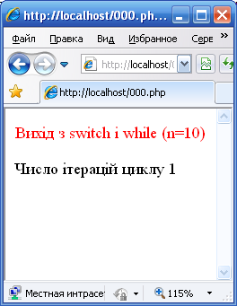 //припиняємо роботу switch (першого break циклу, що містить)