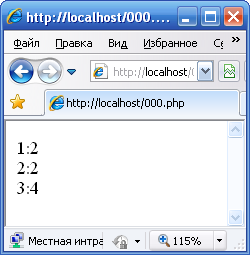 echo "$i:$n <br>";