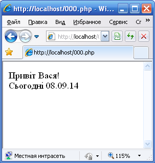 $str = "сьогодні: $today <br>";