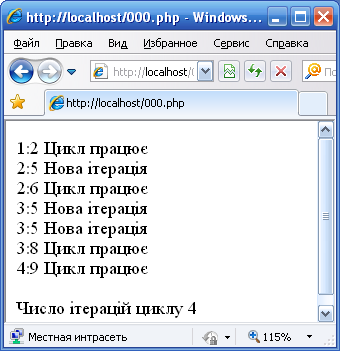 echo "<br>Число ітерацій циклу $i ";