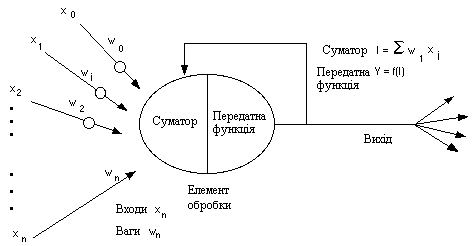 вибір функції суматора, передатної функції та методів навчання;