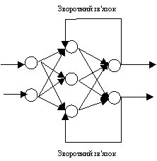 При зворотному зв'язку, вихід нейронів прошарку скеровується до нейронів попереднього прошарку.