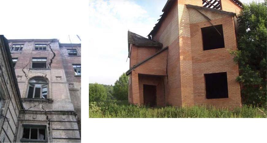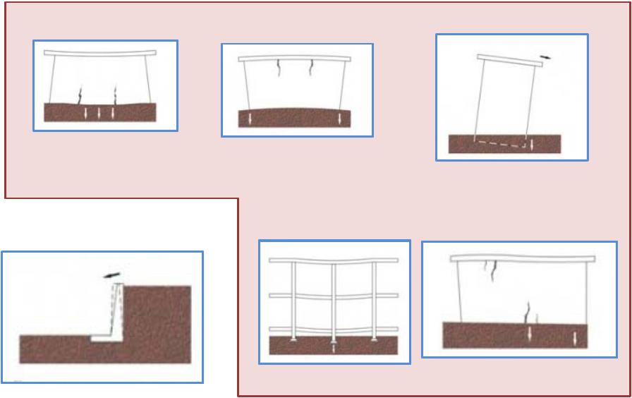 Види деформацій, які здебільшого формуються при нерівномірному осіданні фундаментів.