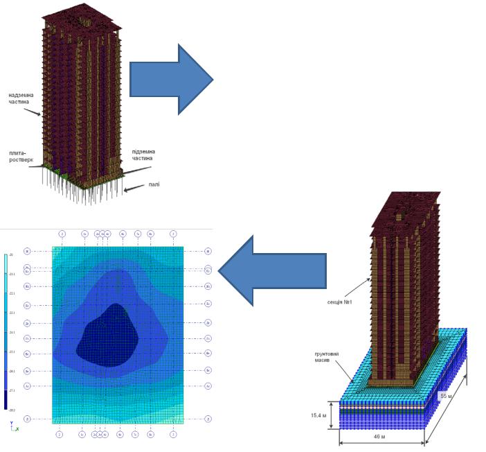 Числове моделювання дає можливість виконувати розрахунки з врахуванням просторової жорсткості, і візуалізувати їх. Також, це дозволяє оцінити розподіл деформацій в фундаментних конструкціях.