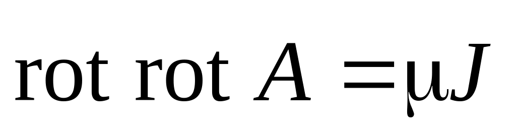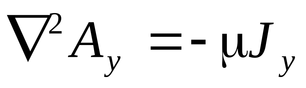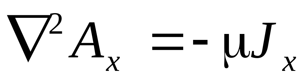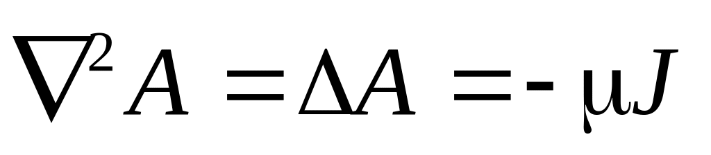 Так как в левой части уравнения стоит Лапласиан векторного потенциала, а правая часть уравнения не равна нулю, то полученное уравнение является уравнением Пуассона для векторного потенциала. В этом векторном уравнении содержится три уравнения для проекций векторов на оси координат, в частности для декартовой системы можем записать: