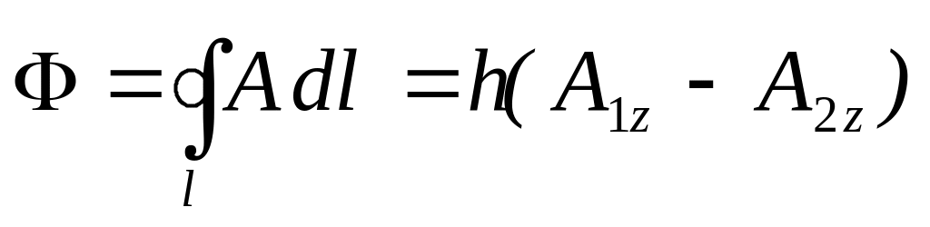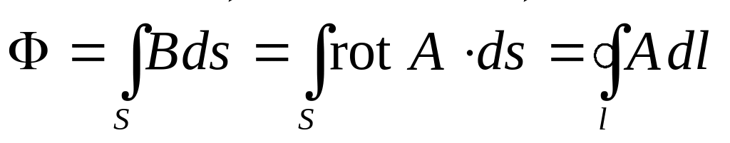Запишем выражение магнитного потока через индукцию магнитного поля, а затем, выразив индукцию через векторный потенциал и применив теорему Стокса, получим: