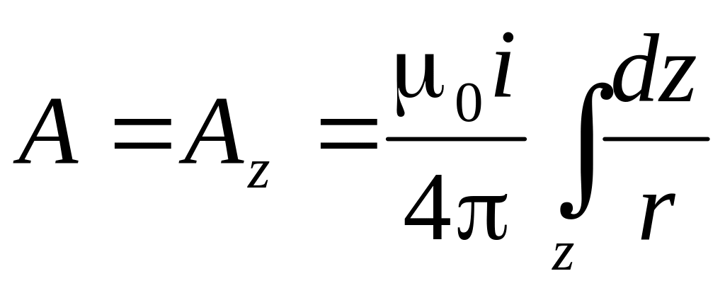 Интегрирование проводится по всей области (объему), где плотность тока не равна нулю. Наиболее часто электрические токи, создающие магнитное поле, протекают по проводам, поэтому представляет интерес вычисление векторного магнитного потенциала для этого случая.