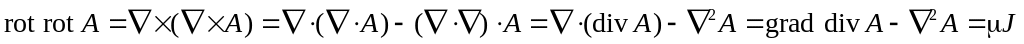 Рассмотрим последнее уравнение, используя векторный оператор Гамильтона (в декартовой системе координат). Преобразуем левую часть уравнения, применяя формулу для двойного векторного произведения: