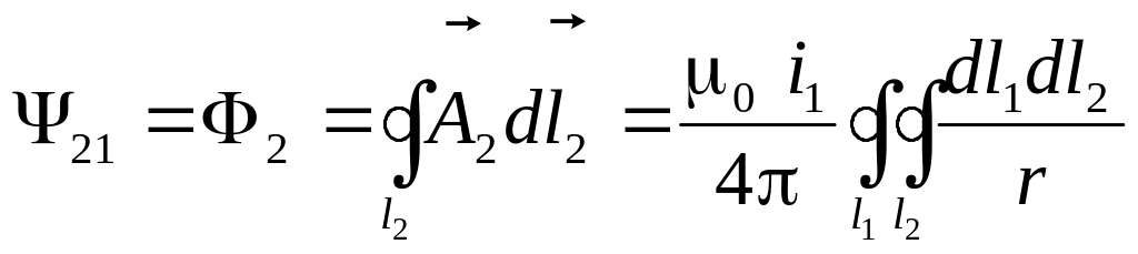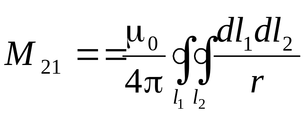 Величина взаимной индуктивности между тонкими контурами определяется следующим соотношением: