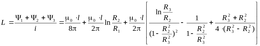 Индуктивность коаксиального кабеля получим, разделив сумму всех составляющих потокосцепления на величину тока в кабеле: