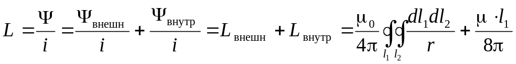 Первое слагаемое в полученной сумме называется внутренней индуктивностью прямолинейного провода кругового сечения: