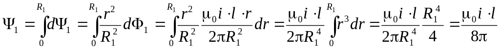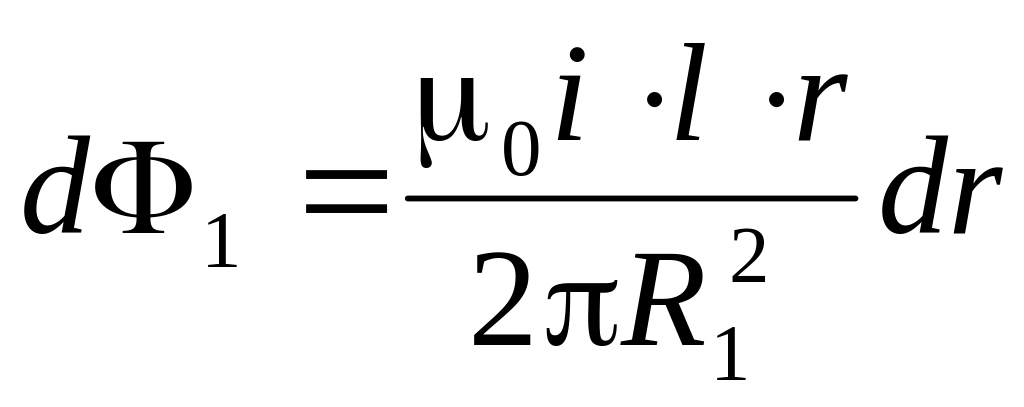 Элементарный магнитный поток в первой области проходит внутри проводника, магнитная проницаемость которого обычно равна 0, и сцепляется лишь с частью всего тока внутренней жилы, определяемой отношением площади, охваченной линиями индукции соответствующего радиуса к площади сечения всей внутренней жилы. Поэтому потокосцепление внутренней жилы можем записать в виде: