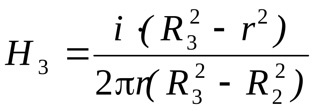 Третья область – внутри проводника (оболочки) с обратным током (R2 r R3)