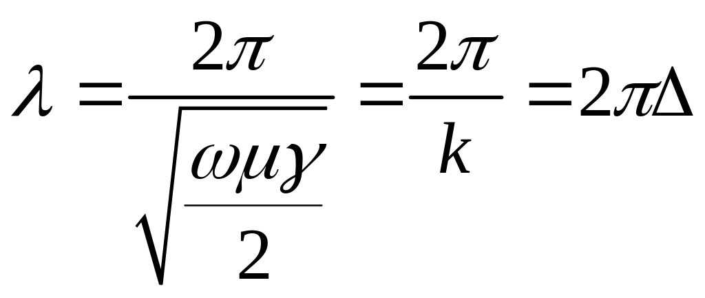 – эквивалентная глубина проникновения примерно в 6 раз меньше длины волны в проводнике.