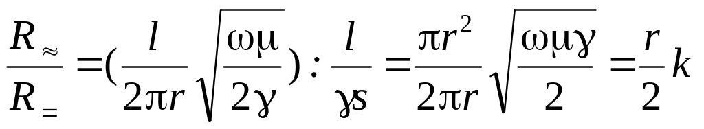 Отношение активного сопротивления провода кругового сечения на переменном токе к сопротивлению этого же проводника на постоянном токе равно: