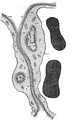 ють приблизно 95 % поверхні альвеол і через їх без’ядерні ділянки відбувається газообмін. Це плоскі видовжені клітини, товщина ядерних ділянок яких (5–6 мкм) у 25–30 разів перевищує товщину (0,2 мкм) без’ядерних ділянок. Цитоплазма вільної поверхні цих клітин утворює короткі виростки (вуалі), які спрямовані в порожнину альвеол, збільшуючи площу контакту вдихуваного повітря з її стінкою. У цитоплазмі альвеолоцитів І типу виявляються дрібні мітохондрії і піноцитозні пухирці.