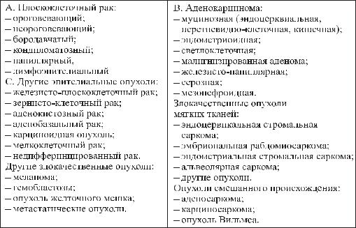 Наиболее прогностически благоприятным является плоскоклеточный ороговевающий рак (а), плоскоклеточный неороговевающий и аденокарцинома (б) – характеризуются неблагоприятным прогнозом.