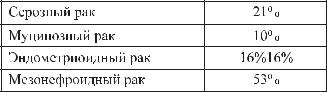 Наибольшую по составу и характеру поражения группу составляют эпителиальные опухоли. В эту группу входят серозные, муцинозные, эндометриоидные, светлоклеточные (мезонефроидные), смешанные эпителиальные, неклассифицируемые эпителиальные опухоли, опухоль Бреннера и недифференцированная карцинома.