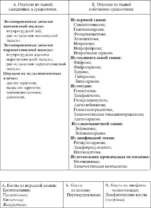 1.Опухоли и кисты собственно средостения (истинные новообразования средостения):