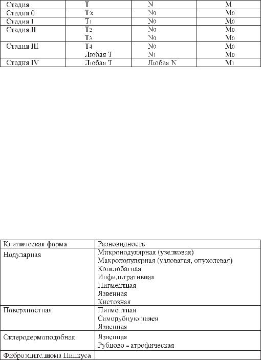 Единой клинической классификации базально-клеточного рака нет. Наиболее обоснованной представляется классификация, выделяющая 4 основные формы и 10 разновидностей базально – клеточного рака.