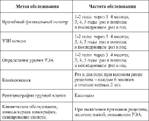 Если в результате тщательного обследования признаки опухолевого роста не выявляются, то больной подлежит тщательному наблюдению с повторным определением уровня РЭА через 1–2 мес и обследованием.
