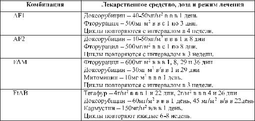 FAM (доксорубицин + фторурацил + митомицин) FtAB (тегафур + доксорубицин + кармустин).