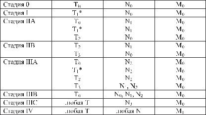 Примечание. *Т1 включает Т1mic (микроинвазия 0,1см или менее в наибольшем измерении).