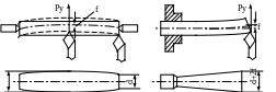 На рис. 3.2 приведены схемы обработки вала в центрах (3.2а) и патроне (3.2б) и погрешности геометрической формы, возникающие от действия радиальной составляющей силы резания.