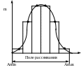 Анализ влияния факторов на погрешность можно вести следующим образом. Измеряя контролируемый размер деталей одной партии, после изготовления их на станке, можно в пределах поля рассеяния разделить их на несколько групп с размерами в пределах определенного интервала. Тогда при достаточно большой партии деталей (50 … 100 шт.) можно обнаружить, что число деталей в группах различно. Если построить график, расположив по оси абсцисс номера групп с последовательно возрастающими значениями размеров от Аmin до Аmax, а по оси ординат – число деталей т, попавших в каждую группу (частоту повторения значений), то получившаяся кривая выразит закон распределения размеров деталей в данной партии.