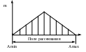 Если появляется влияние еще одного фактора, то характер изменения размеров может быть другим. Например, в случае недостаточной жесткости технологической системы и в связи с износом ее элементов появляется дополнительная деформация. При суммарном действии двух факторов закон распределения имеет форму треугольника – закон Симпсона (рис. 4.2).