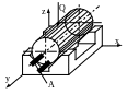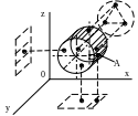 На рис. 8.6 видно, что расположение вала в пространстве определяется пятью координатами, которые лишают заготовку пяти степеней свободы перемещения в направлениях Х, Y, Z и вращения вокруг осей Х и Z. Шестая степень свободы, т.е. вращение вокруг собственной оси, в данном случае ограничивается координатой, проведенной от поверхности шпоночной канавки А. Четыре опорные точки, расположенные на цилиндрической поверхности, образуют двойную направляющую базу. Опорная точка на торце валика и шпоночный паз определяют поверхности, служащие опорными базами.