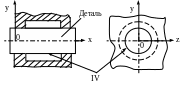 Двойная направляющая база – это база, лишающая деталь четырех степеней свободы – двух перемещений вдоль двух координатных осей и поворотов вокруг этих же осей (поверхность IV) (рис. 8.3).