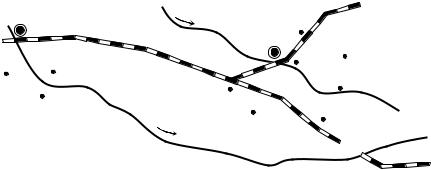 Для передачи энергии от станций к потребителям сооружаются линии электропередачи (ЛЭП). Один из возможных вариантов расположения этих линий применительно к условиям рассматриваемого промышленного района показан на рис.1.2. Совокупность линий электропередачи образует электрическую сеть. Такая сеть может включать линии различного номинального напряжения, которое обычно отличается от напряжения, требующегося для непосредственных электроприемников: двигателей, осветительных приборов, преобразовательных установок и т. п. Для взаимной связи линий электропередачи и потребителей сооружаются подстанции. На них устанавливаются трансформаторы или автотрансформаторы, размещаются аппараты,